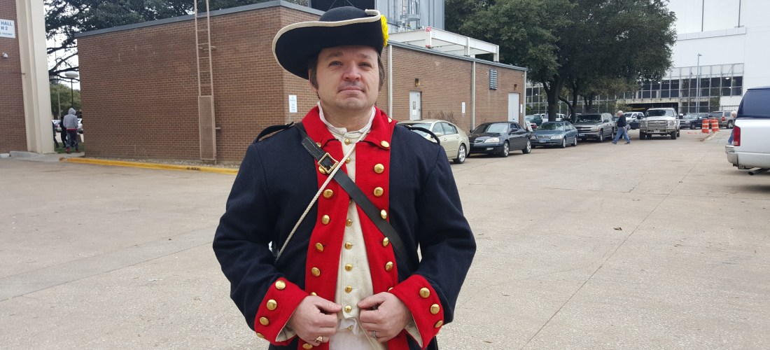 McKinney resident Philip Weber, 35, attended the gun show in Revolutionary War attire and was quick to take verbal shots at Obama.