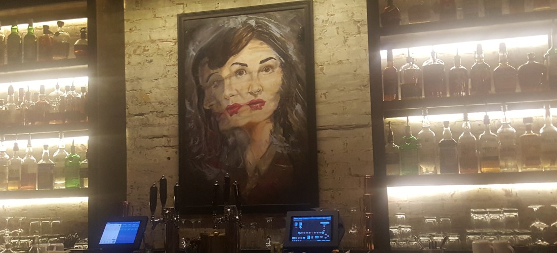 The bar’s centerpiece, which shows three perspectives of the unknown woman’s face, is like a memory of another time — a throwback to the great tradition of paintings of beautiful women behind bar counters.