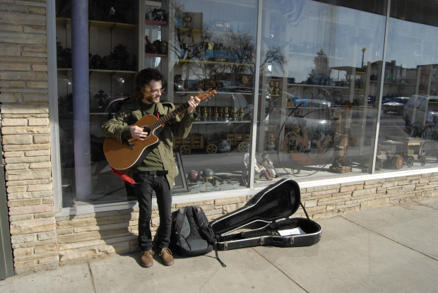He tries to make it a comfortable environment by providing separate tables for families — crayons and coloring books included. Some play the standup piano tucked into the back corner or bluegrass tunes on the mandolin.